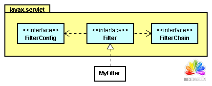 Filter是個接口,位于 javax.servlet.Filter。它與其他接口的關系如下: