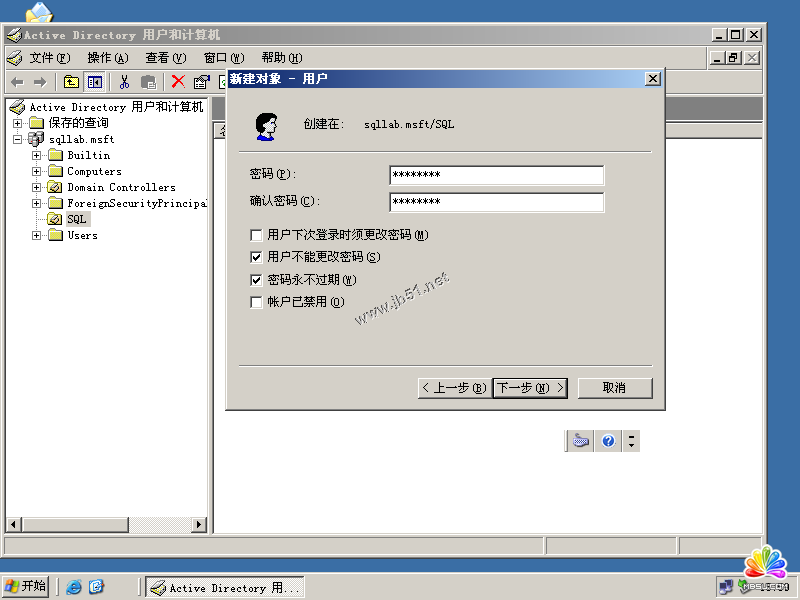 sqladmin 密碼:K3$f0z6 密碼可自行設定,這里為了符合AD域的密碼策略。