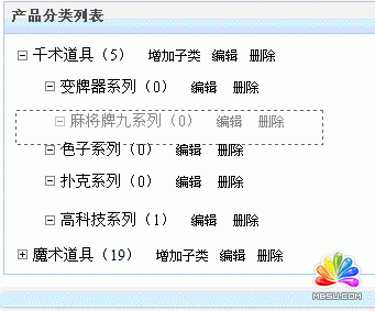 在開發項目中經常碰到二級目錄形式。比如文章模塊、產品模塊,很多應多都基于兩級分類形式。而普通的解決排序方案,不管是一級分類,還是多級分類,都是由管理員在后臺手動編輯同級分類排序的值來設置排序,根據該值的大小決定顯示的順序。這樣的操作方式比較煩瑣。jQuery有對于排序采用拖拽方式來實現排序,從用戶層面,這樣的操作非常直觀,操作簡便。曾經在一個項目中,產品分類采用的是兩級分類,顯示如下圖所示: