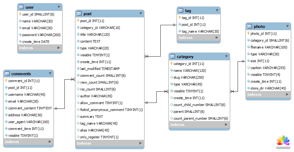 我會挑最重要的 post , category 2個表中的特別字段來詳細說明,其他說重要的。
