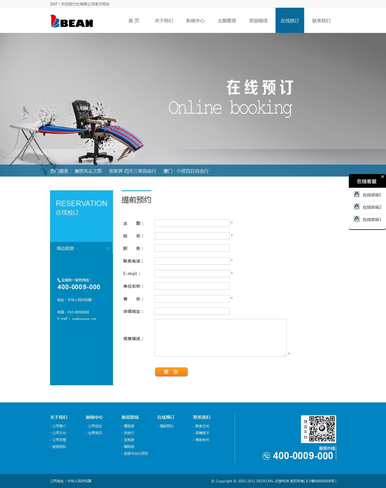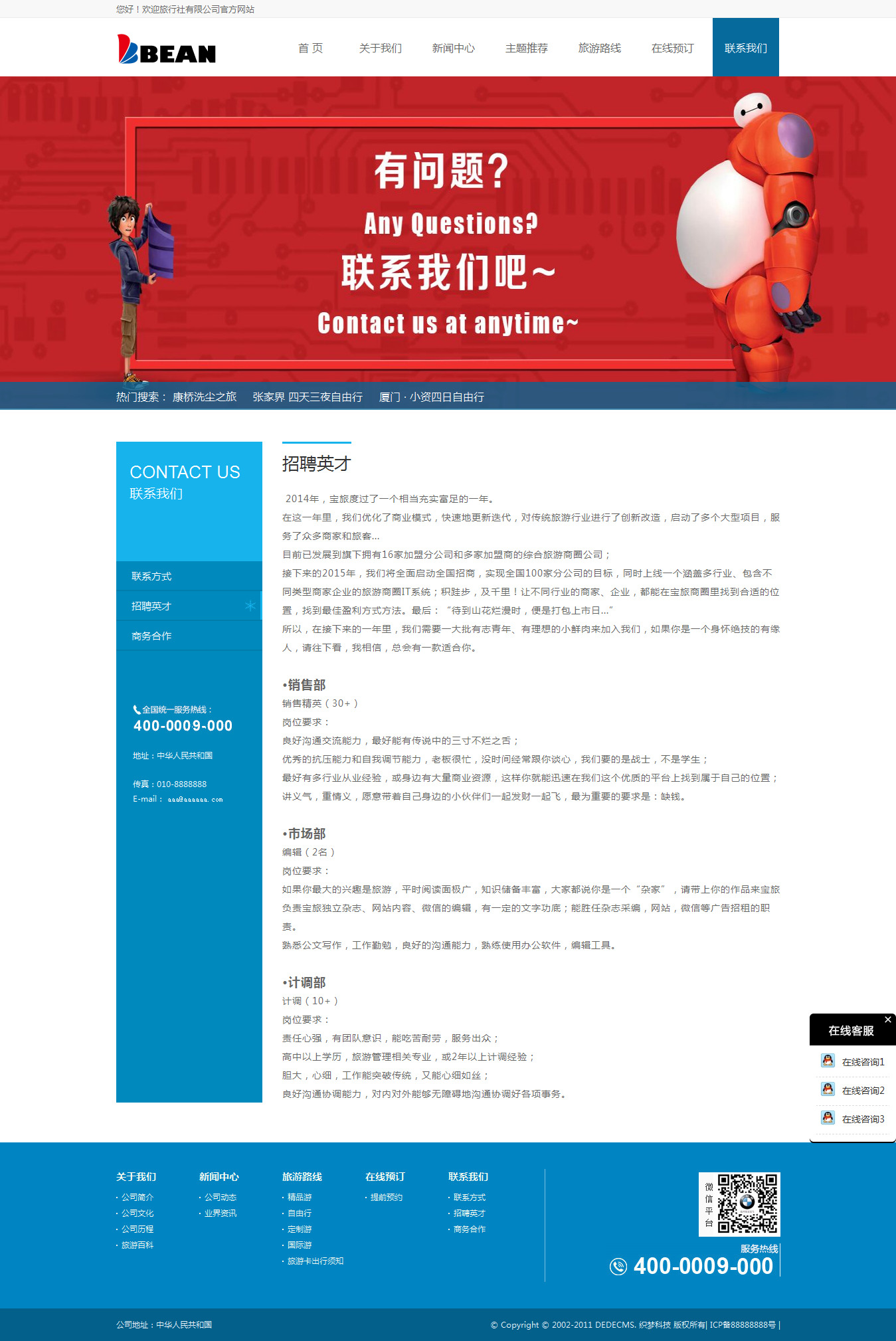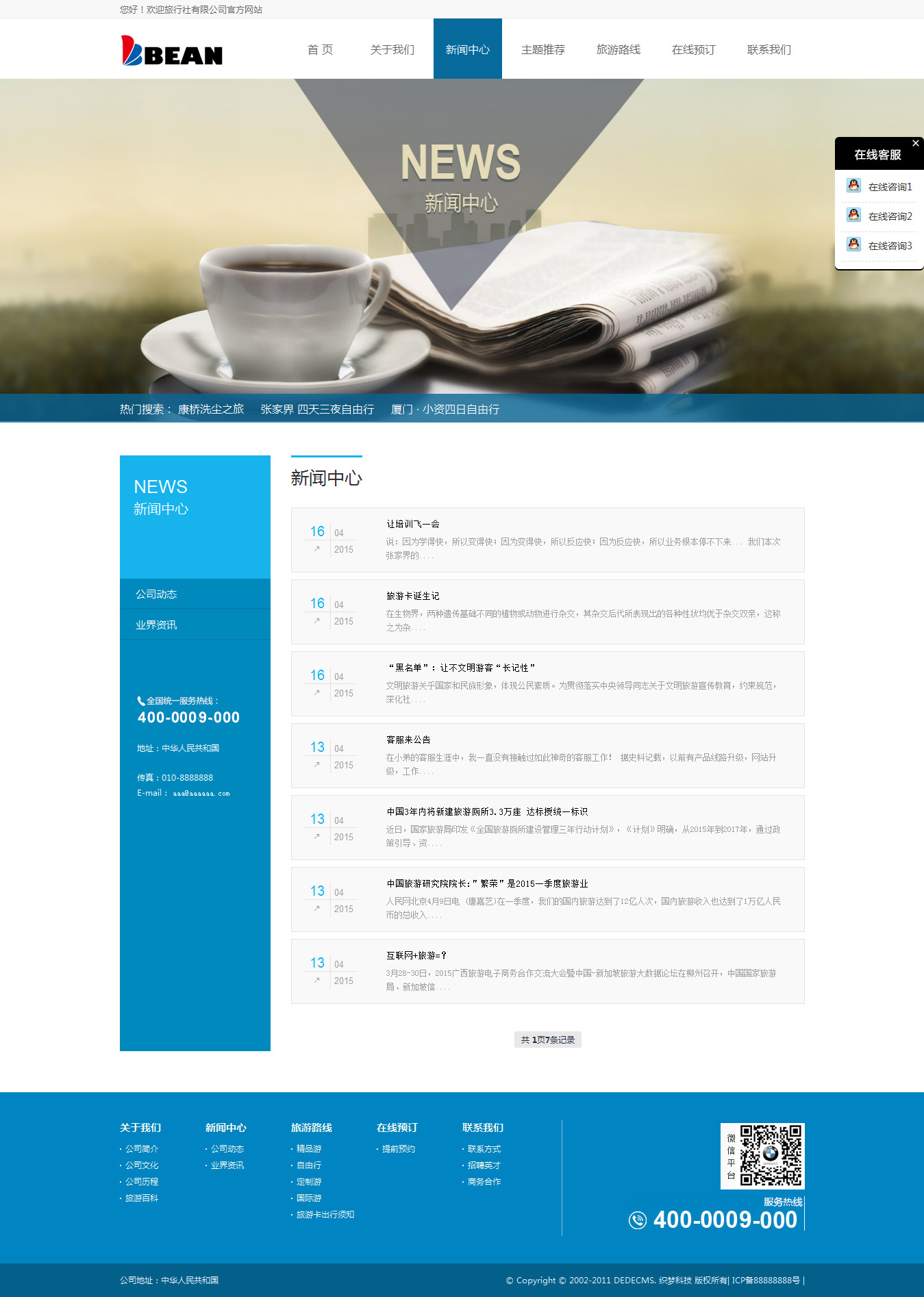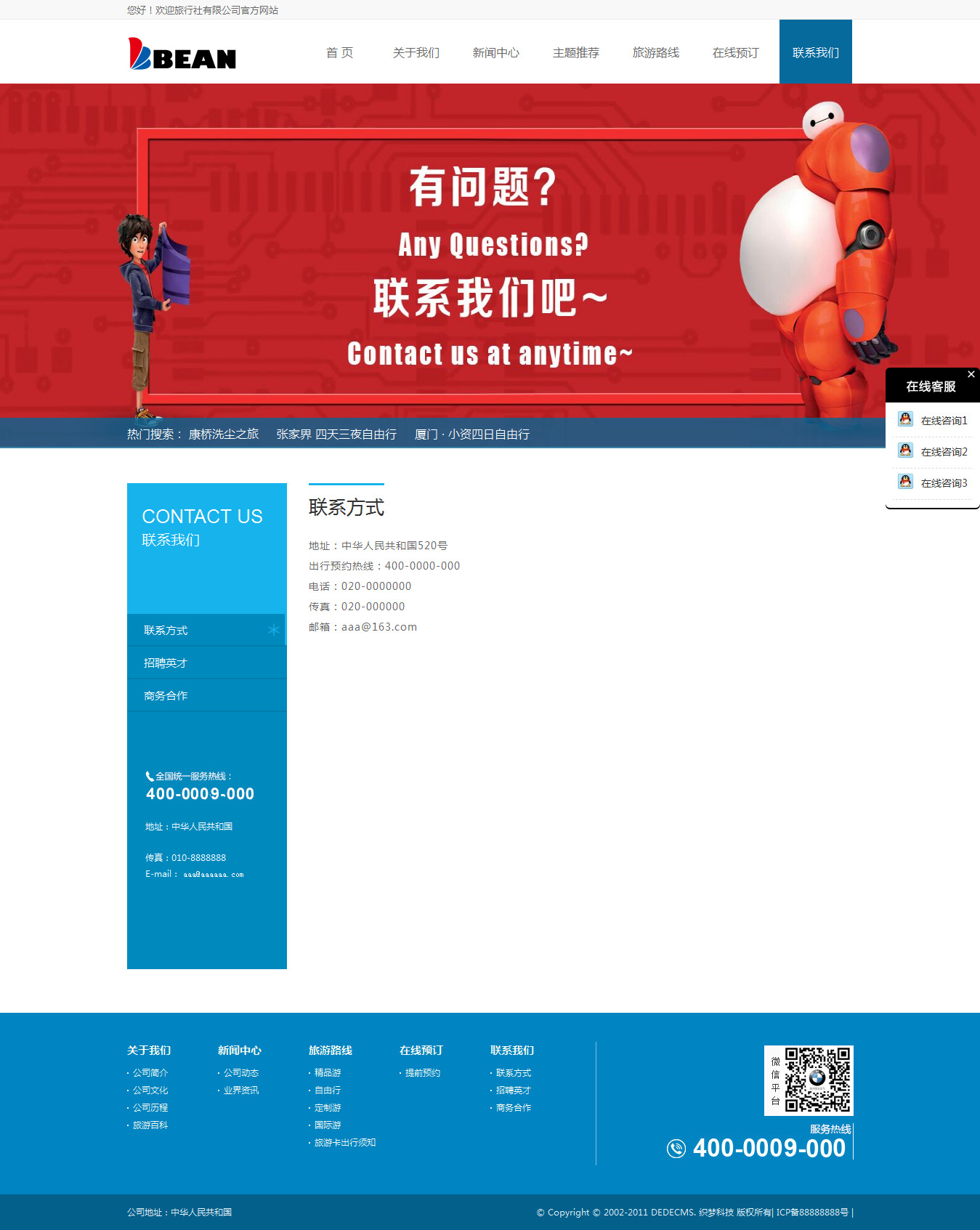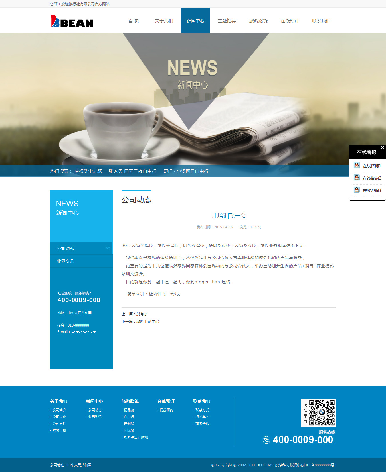 織夢dedecms藍色旅游網站/旅行社企業模板 帶后臺數據