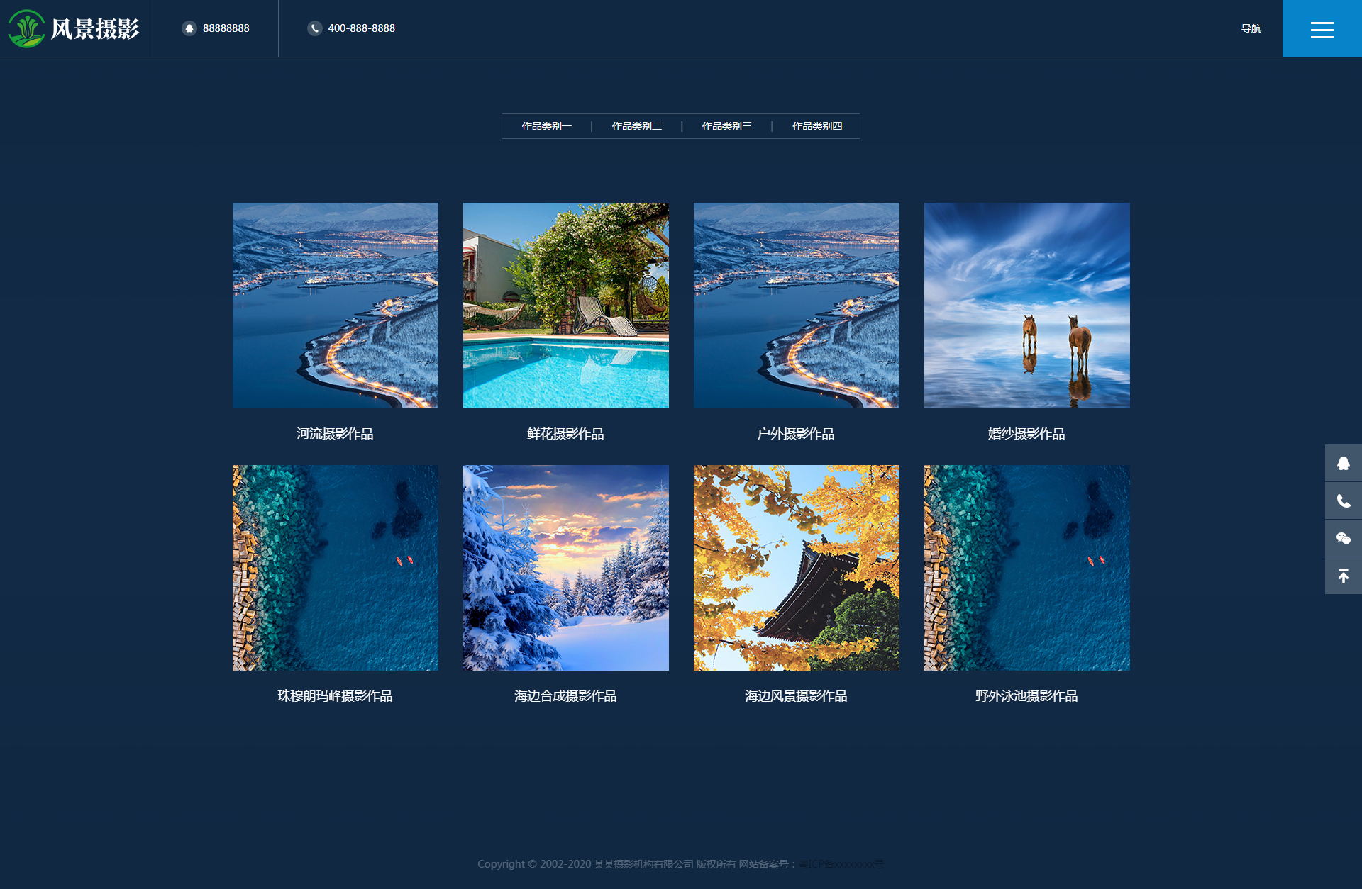 響應式攝影機構類網站織夢模板(自適應)基于織夢UTF內核制作,適用于HTML5響應式、戶外攝影、婚紗攝影設計類企業使用,一款適用性很強的模板,基本可以適合各行業的企業網站!相比較上一套響應式風景攝影類網站織夢模板(自適應),兩套源碼都比較簡單大氣,使用簡單。