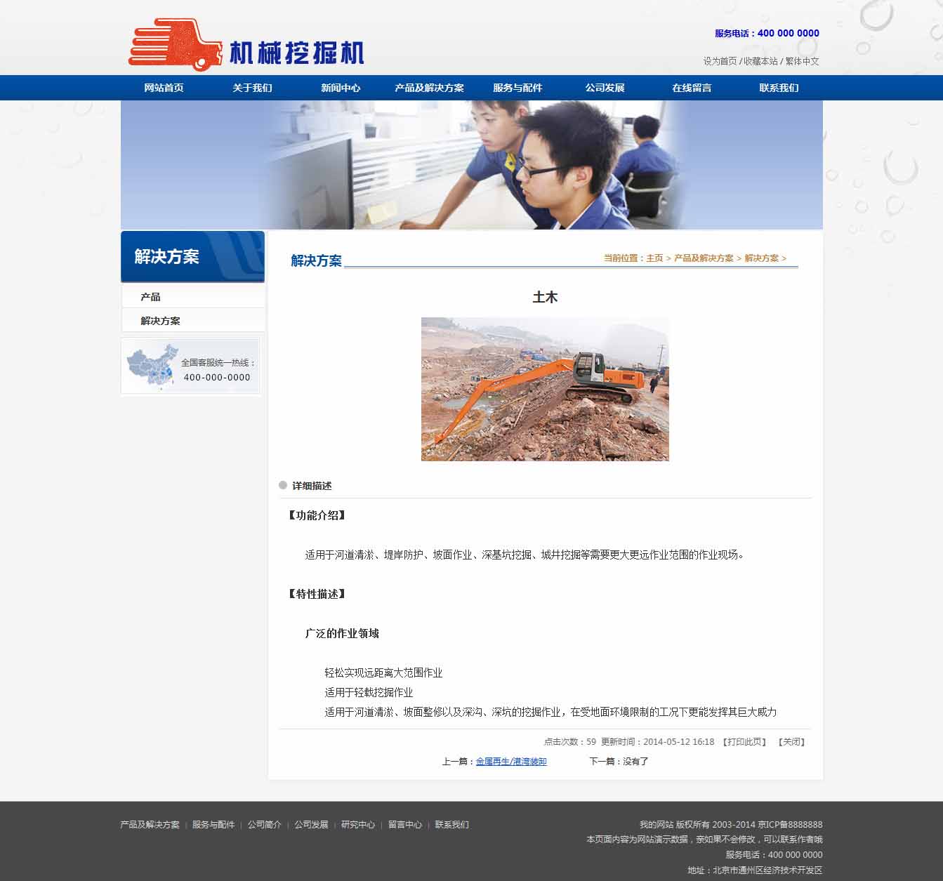 此套模板是一套PC+獨立手機端的的企業模板,相比國外的響應式模板這種組合的網站結構還是挺受我們國人的喜愛的價格:元 點擊:123織夢cms大氣重型機械設備公司