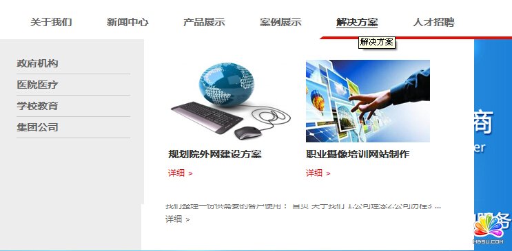 模板亮點:(六大主欄目對應(yīng)的下拉顯示框)