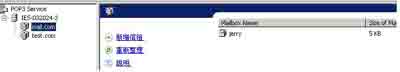選中剛才新建的“MAIL.COM”域,在右欄中點擊“添加郵箱”,彈出添加郵箱對話框,在“郵箱名”欄中輸入郵件用戶名,然后設置用戶密碼,最后點擊“確定”按鈕,完成郵箱的創建,本例中創建的mailbox是jerry@mail.com。