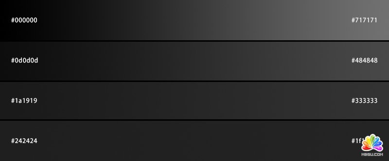 關于“色帶”,很多人都誤以為是顯卡問題或者顯示問題,在其他設備上看就會消失,其實這是錯的,色帶是在漸變時由于顏色間色值差異過小而產生的一種條紋,通常顏色越接近,色相越統一,其產生的色帶就越明顯,如下是一組灰色漸變,大家可以明顯的觀測到,顏色相近的漸變產生了較大的色帶,而反之則變得很小且數量更多。
