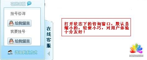(1)咨詢窗口不要設置定時打開。筆者發(fā)現一些網站的咨詢窗口實在是非常煩人,明明關閉了,只要一刷新或者隔了一分鐘,它又自動打開,這種窗口是非常不友好的。筆者建議把咨詢窗口放置在左側,并默認做成縮小狀態(tài),當用戶需要打開時才打開,而不是等網頁一加載完就打開,如下圖: