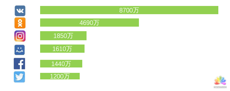 俄羅斯最流行的社交網(wǎng)站是VK,月訪問(wèn)量最高可達(dá)8700萬(wàn)次,是Facebook在俄羅斯的6倍之多。VK不光是俄羅斯最大的社交網(wǎng)站,也是歐洲地區(qū)最大的社交網(wǎng)站,全球排名第十五位,是SNS營(yíng)銷(xiāo)非常重要的陣地,也是其實(shí)現(xiàn)產(chǎn)品本土化的主要渠道。